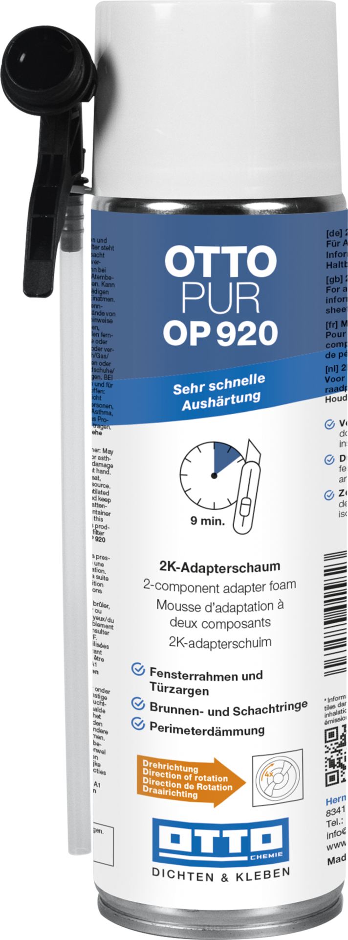 Der PU-Schaum OTTOPUR OP 920 ist 2-komponentiger Adapterschaum mit sehr schneller Aushärtung. Er besitzt eine exzellente Wärmedämmung und einen sehr guten Schallschutz.
