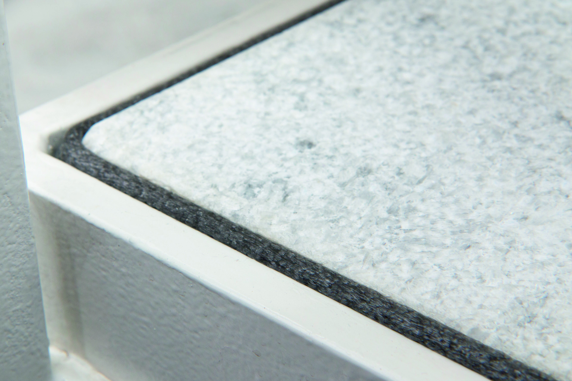 • Bewegungsausgleichendes Kleben von Naturstein auf Metall, z.B. Treppenstufen auf eine Metallkonstruktion